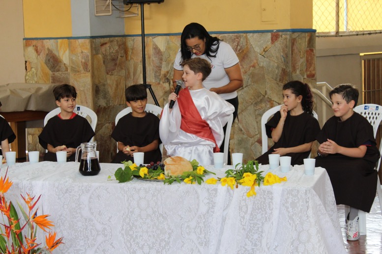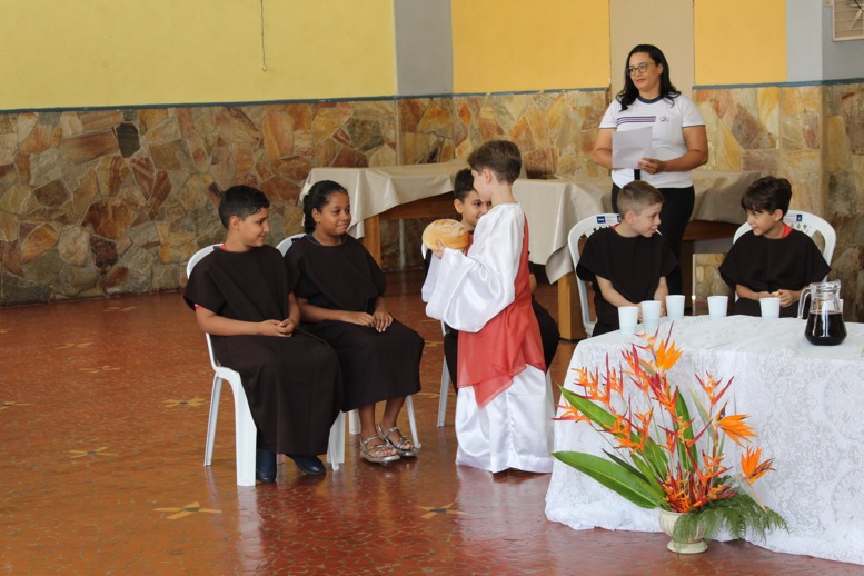 As atividades contaram com encenações preparadas pelos estudantes, que representaram a partilha do pão e a Última Ceia, proporcionando uma experiência significativa de aprendizado e espiritualidade.