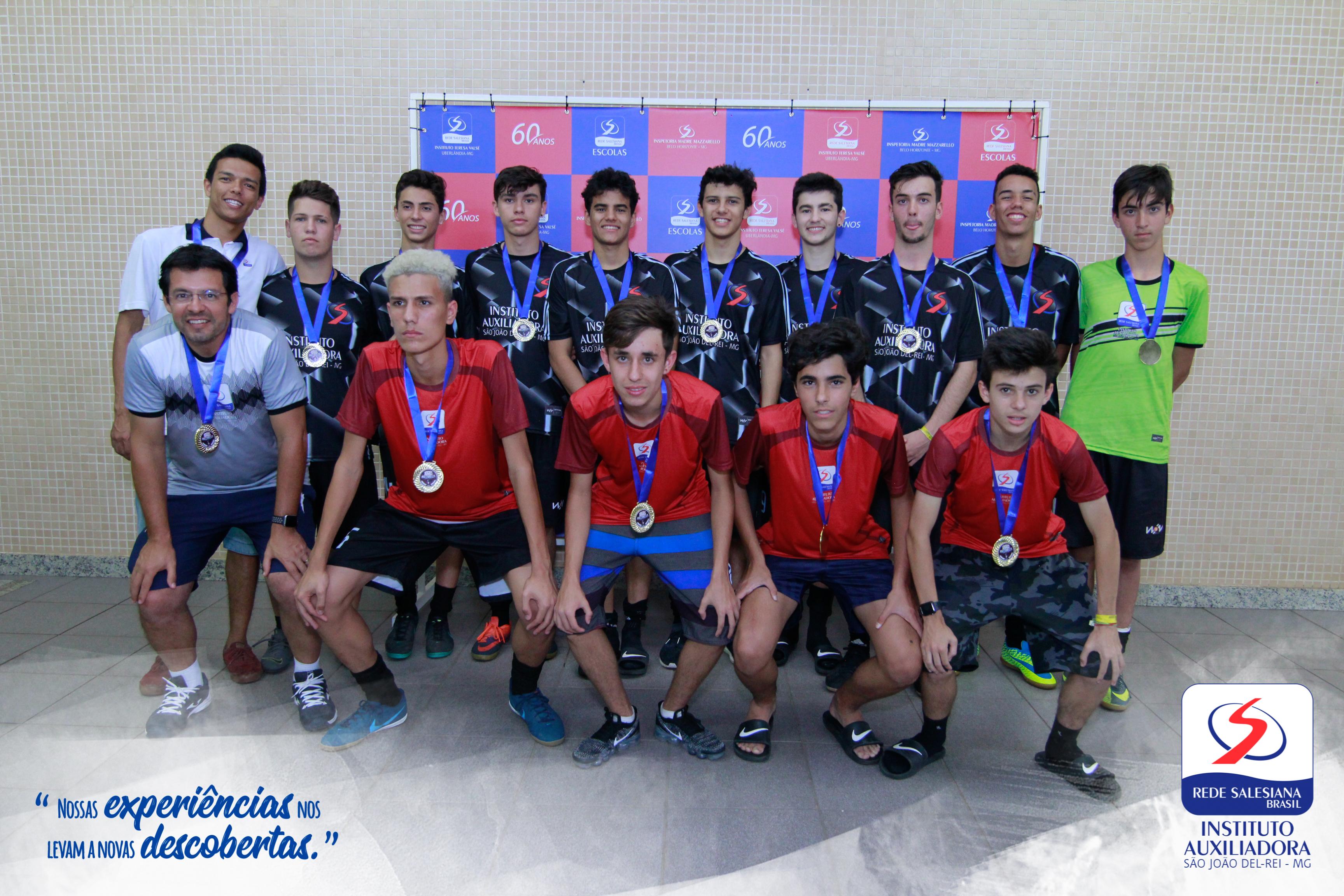 Entre os dias 14 e 18 de setembro, os atletas do Instituto Auxiliadora estiveram em Uberlândia para disputar os Jogos Mazzarello 2019 - competição entre todas as unidades da Rede Salesiana Brasil da Inspetoria Madre Mazzarello - no Instituto Teresa Valsé. Foram dias de muito empenho e dedicação que trouxeram grandes resultados: 2 ouros e 3 pratas! O Futsal sub-17 se consagrou campeão juntamente do Basquete sub-13, sob o comando dos treinadores Kléverson Garcia e Sávio Carvalho, respectivamente. As pratas foram conquistadas pelo time de Basquete sub-17 e pelo time de Vôlei sub-15 e sub-17 do treinador Cadu Nascimento.