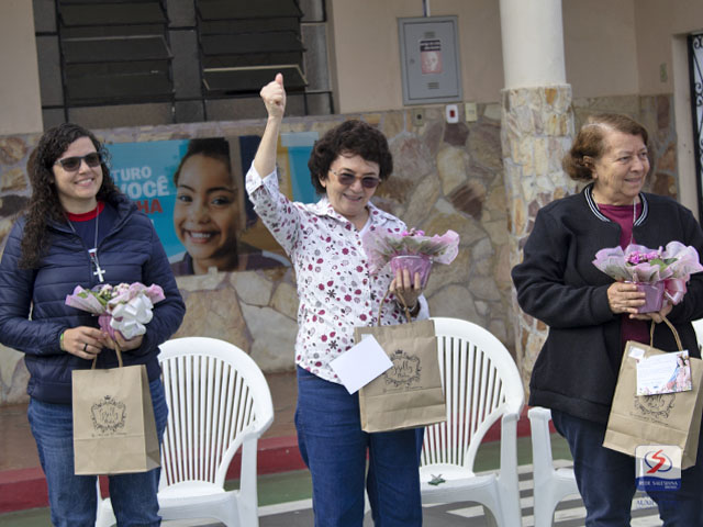 De forma singela e muito carinhosa, nossa comunidade educativa, do Maternal ao Ensino Médio, homenageou cada uma das "Irmãs Salesianas" que caminham atualmente conosco e protagonizam uma trajetória marcada pelo amor à juventude: Ir. Silvia, Ir. Josefa, Ir. Marina e Ir. Fabiane.